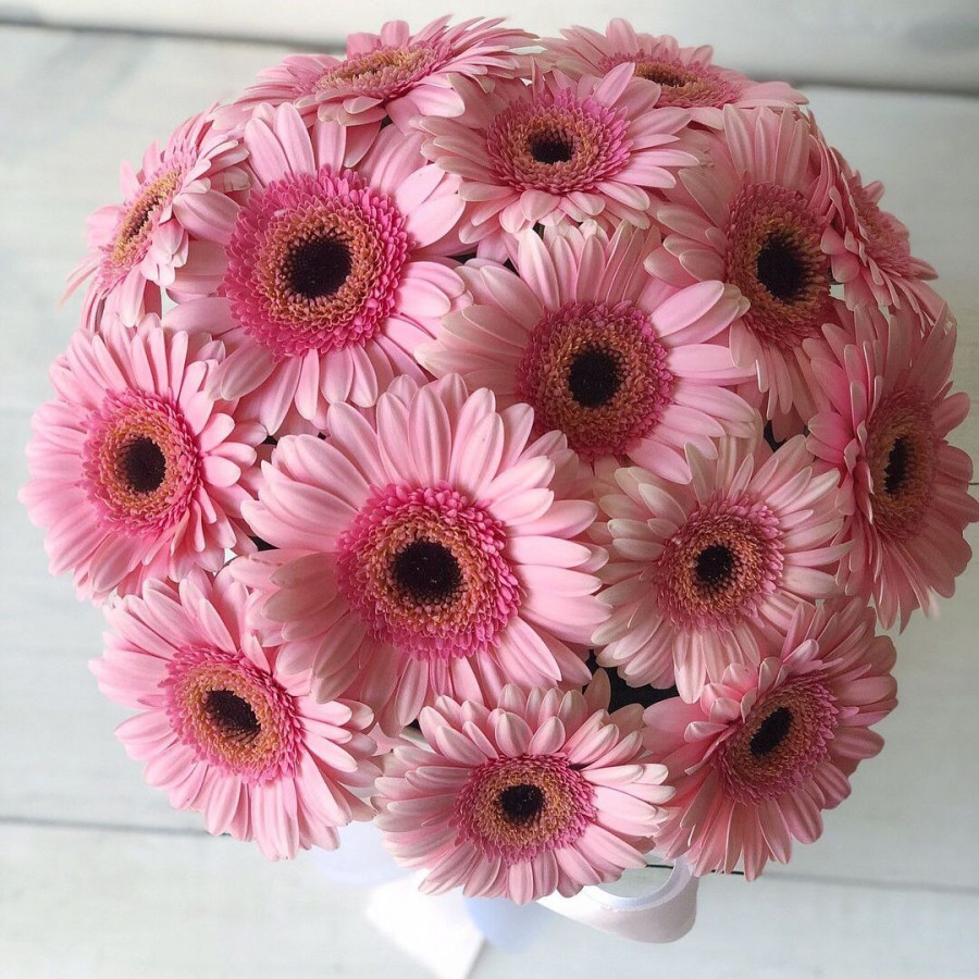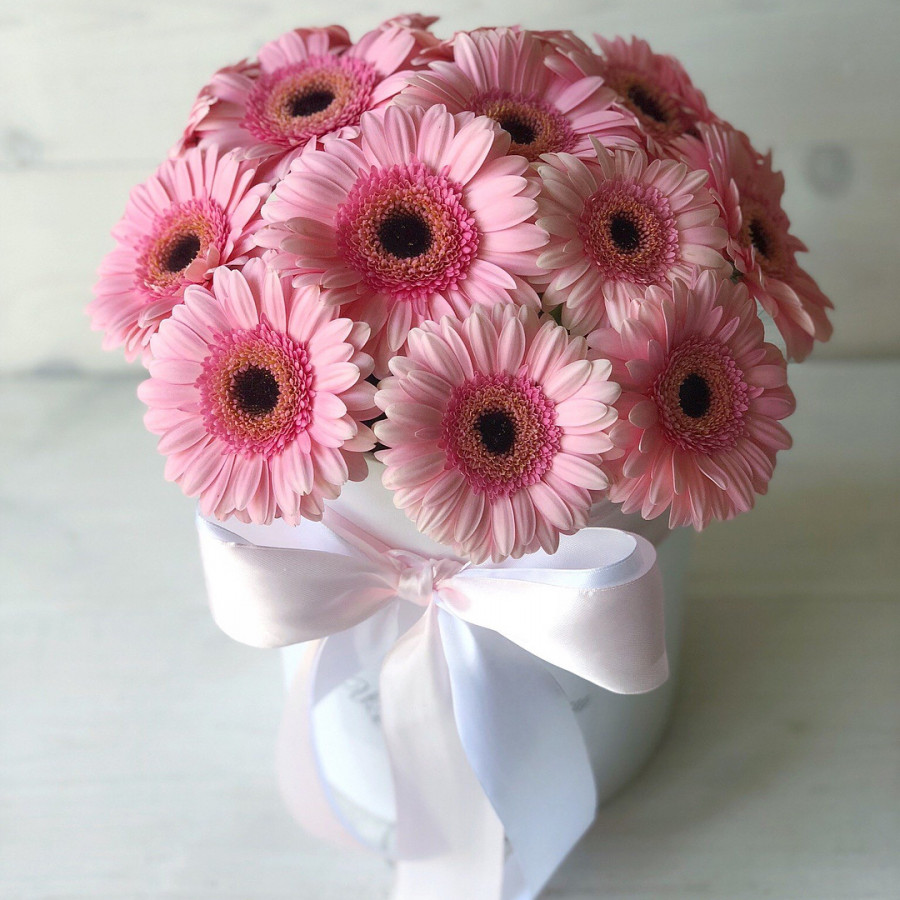 Букет из розовых гербер станет прекрасным подарком на любое торжество. Он выполнен в круглой белой шляпной коробке, что придает ему элегантность и изысканность. Композиция состоит из 15 нежных и ароматных гербер, которые будут долго радовать своей красотой и свежестью. Герберы - это символ любви и нежности, поэтому такой букет будет прекрасным выражением ваших чувств.