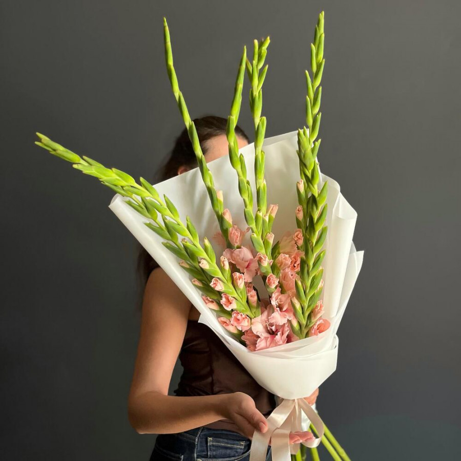 Букет из гладиолусов и эустомы