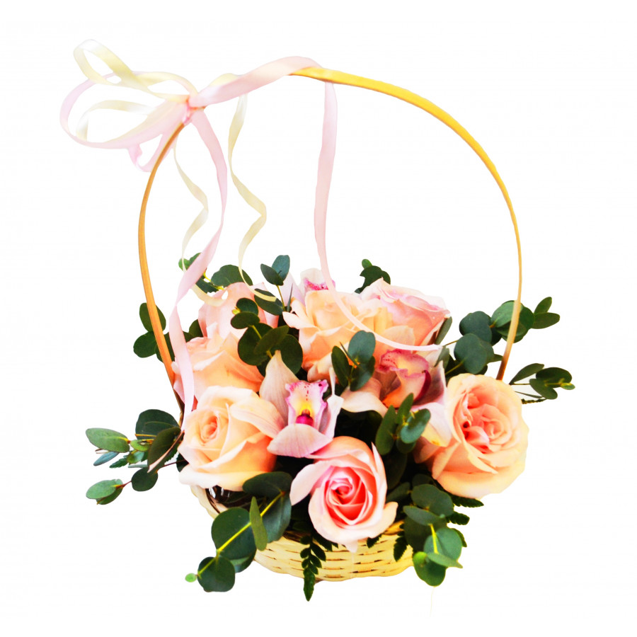Нежная трепетная композиция из эквадорских роз, благоухающих орхидей и свежих веточек эвкалипта в романтичной плетёной корзинке с тонкими лентами лучше иных слов передаст Ваши тёплые и настоящие чувства получательнице. Композиция без слов расскажет о Ваше любви к получательнице или просто подскажет Вашей возлюбленной, насколько сильно она Вам дорога.
