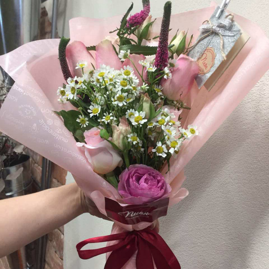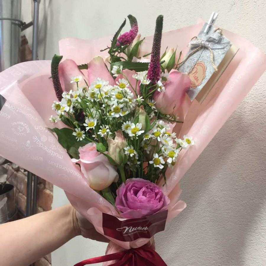 Перед выездом курьера пришлём фото свежесобранного букета, чтобы вы были спокойны