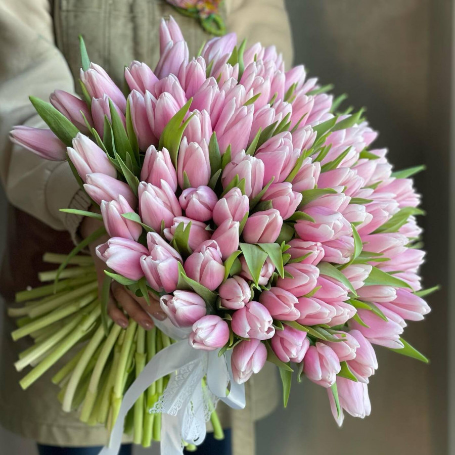 Букет из 101 тюльпана – это прекрасный подарок для самых дорогих и любимых людей. Эти нежные цветы символизируют красоту, молодость и чистоту. Букет из розовых тюльпанов – это классический выбор для подарка на любой праздник. Он может быть подарен на свадьбу, день рождения или просто так, без повода. Розовый тюльпан – это символ любви и нежности, поэтому такой букет обязательно понравится получателю.