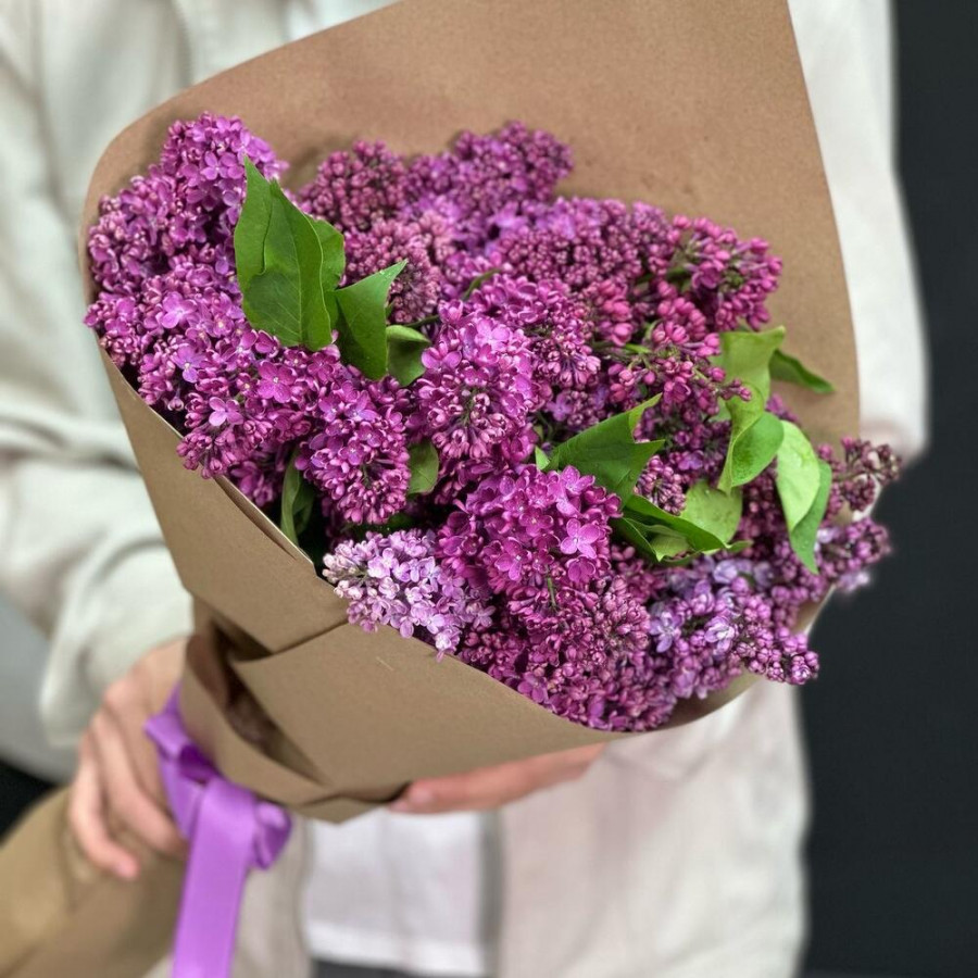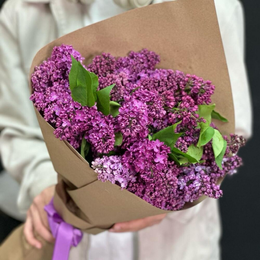 На фото букет из 11 веток сиреневой сирени. В составе: сирень 11 шт, крафт-бумага 2 шт, атласная лента 1 шт, . Все цветы свежие и ароматные, букет красиво оформлен и отлично подходит для подарка. Доступна доставка цветов или самовывоз.
