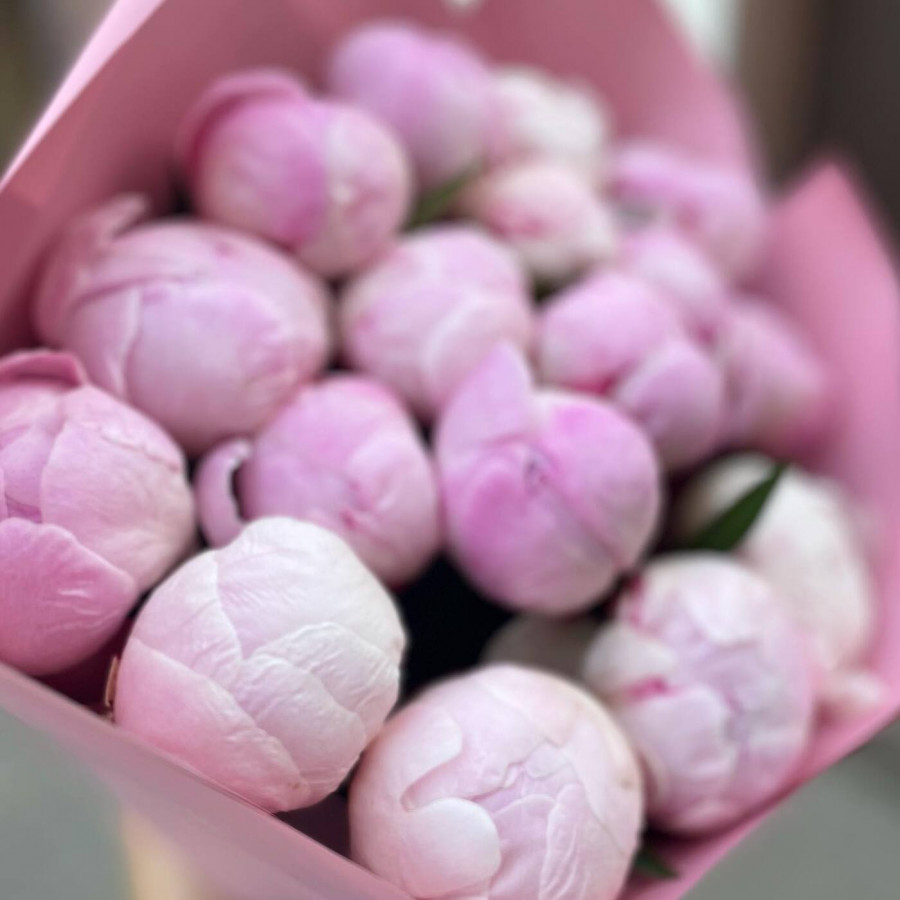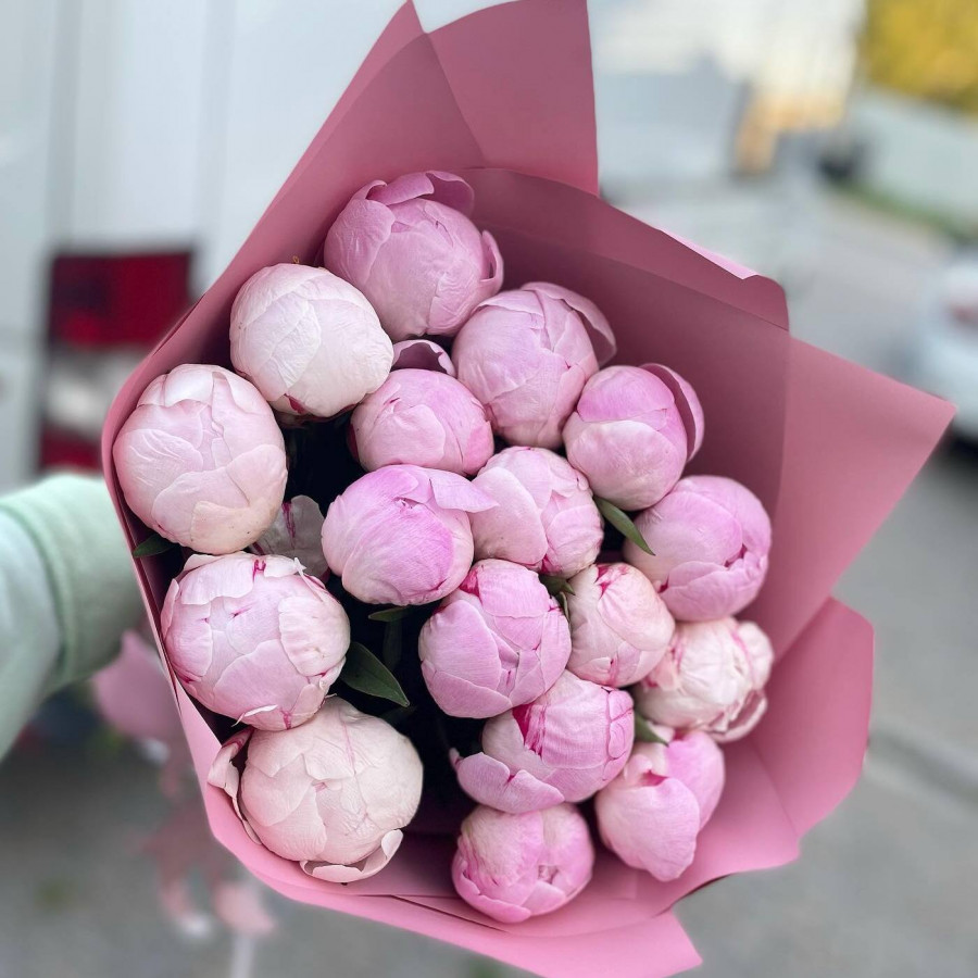 На фото букет из 17 розовых пионов. В составе: пион 17 шт, крафт-бумага 1 шт, . Все цветы свежие и ароматные, букет красиво оформлен и отлично подходит для подарка. Доступна доставка цветов или самовывоз.