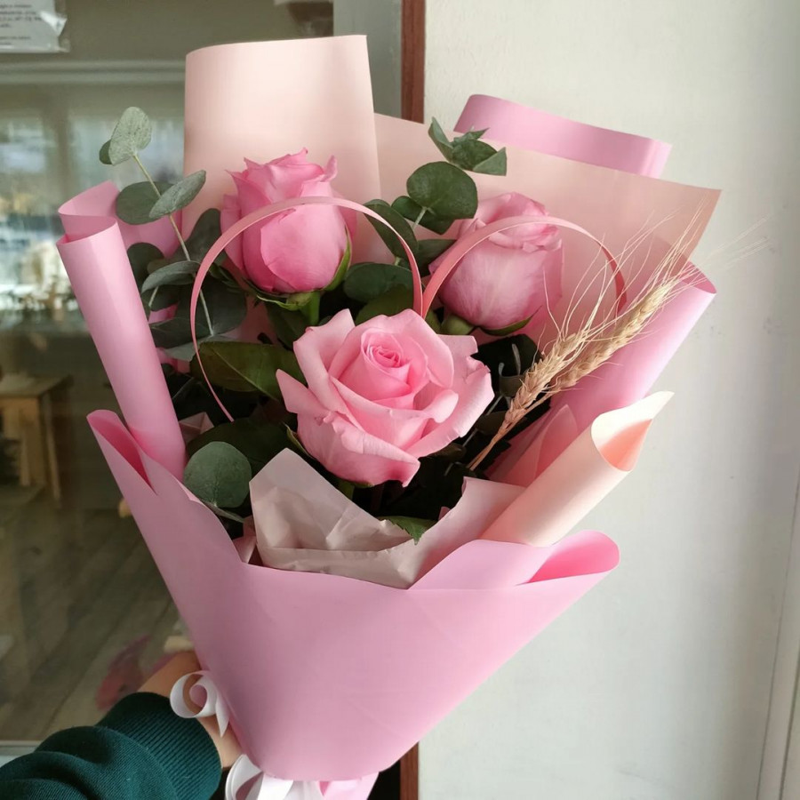 Букет из трёх розовых роз с сухоцветом - это красивый и оригинальный подарок, который понравится любому человеку. Розы в букете имеют нежный розовый цвет и приятный аромат. Сухоцвет добавляет букету свежести и оригинальности. Такой букет можно подарить на любой праздник, он будет долго радовать получателя своей красотой и ароматом. Закажите букет прямо сейчас и порадуйте своих близких