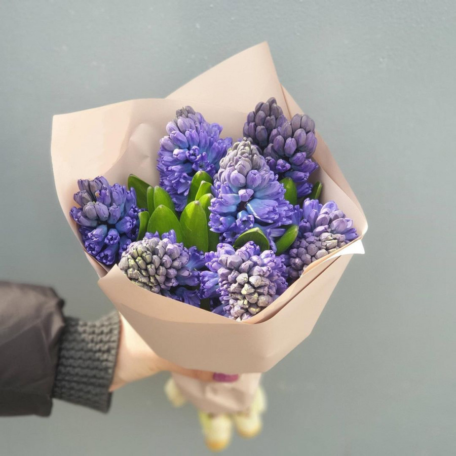 На фото букет из 7 голубых гиацинтов. В составе: гиацинт 7 шт, крафт-бумага 1 шт, атласная лента 1 шт, . Все цветы свежие и ароматные, букет красиво оформлен и отлично подходит для подарка. Доступна доставка цветов или самовывоз.