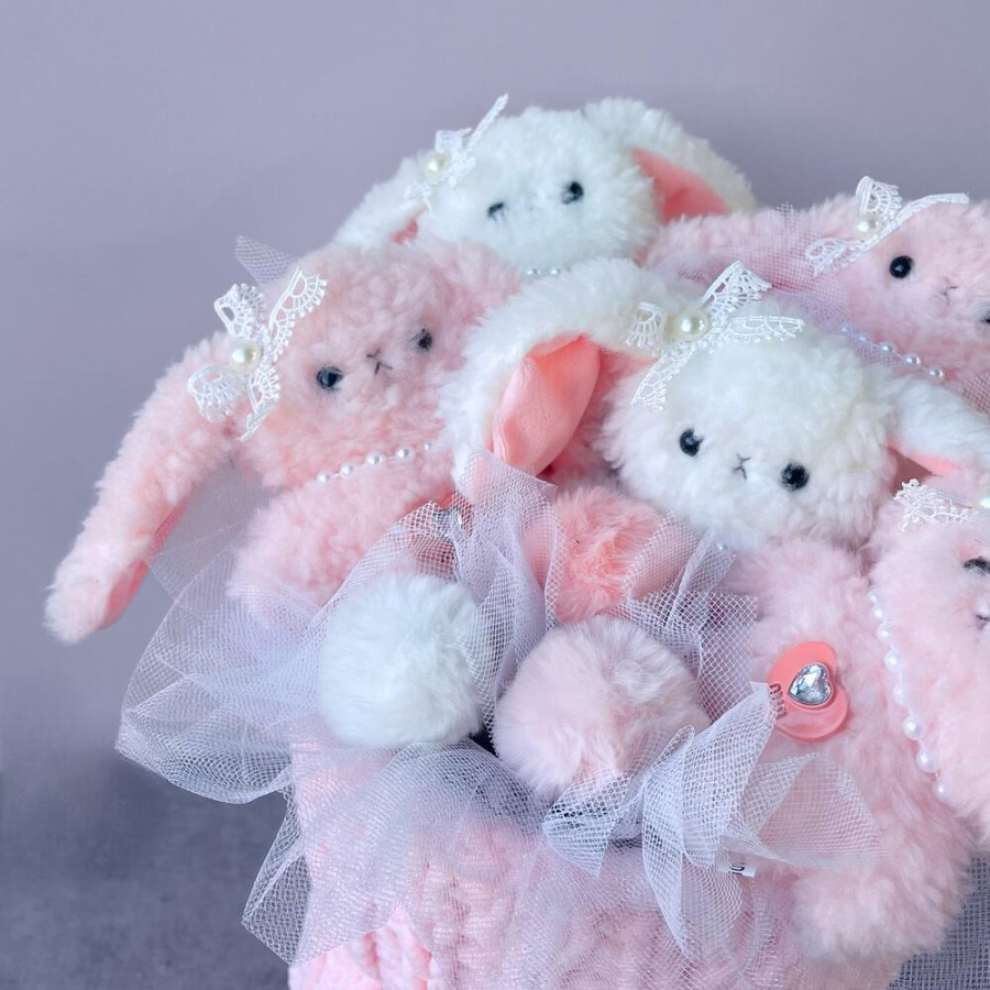 Букет из игрушек зайчат в платье