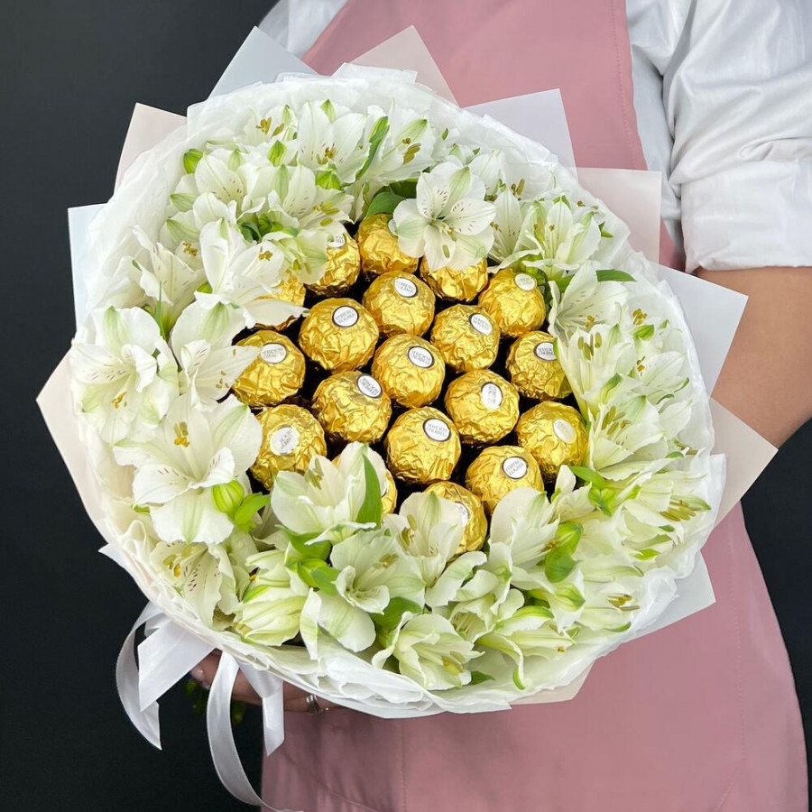 Букет из конфет Ferrero Rocher и и альстромерии