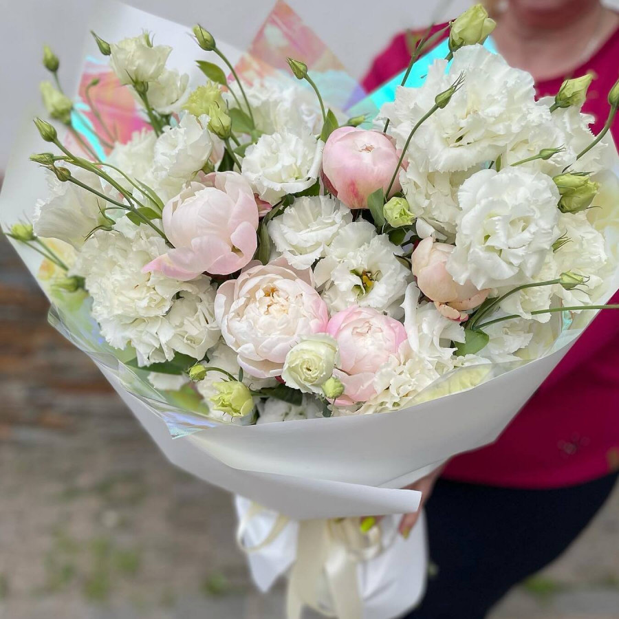 Букет из пионов и эустомы