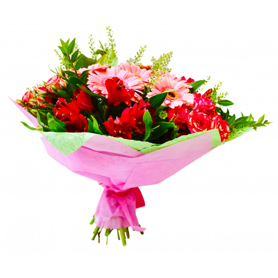 Яркий букет из огненных альстромелий, гербер и кустовых роз станет прекрасным подарком, если Вы хотите выразить Ваши бушующие чувства к получательнице. Дерзкие яркие цвета станут отражением старсти и любви, а великолепные цветы еще долго будут заставлять красавицу думать о Вас.