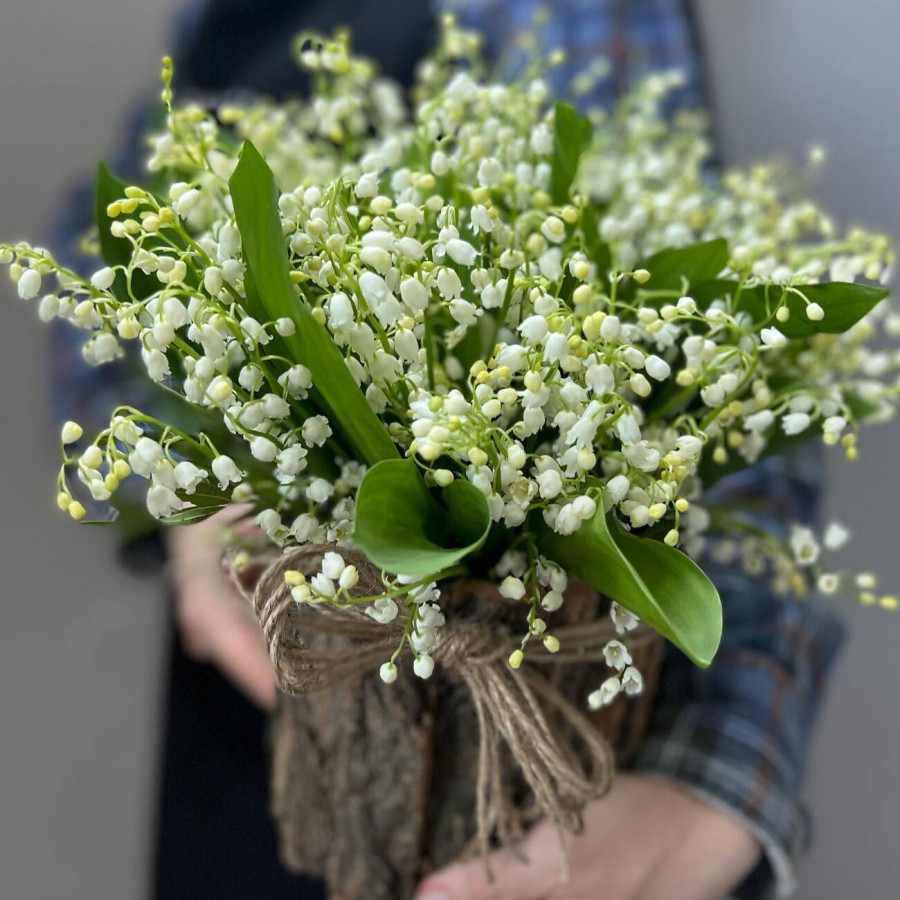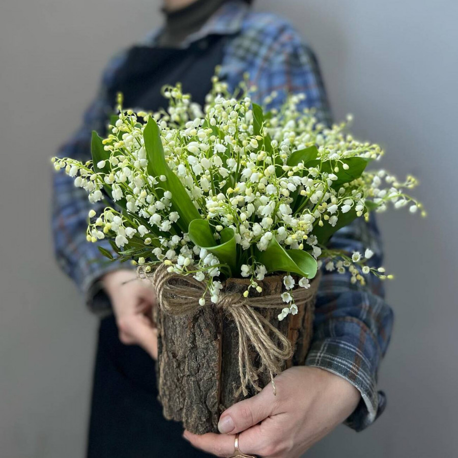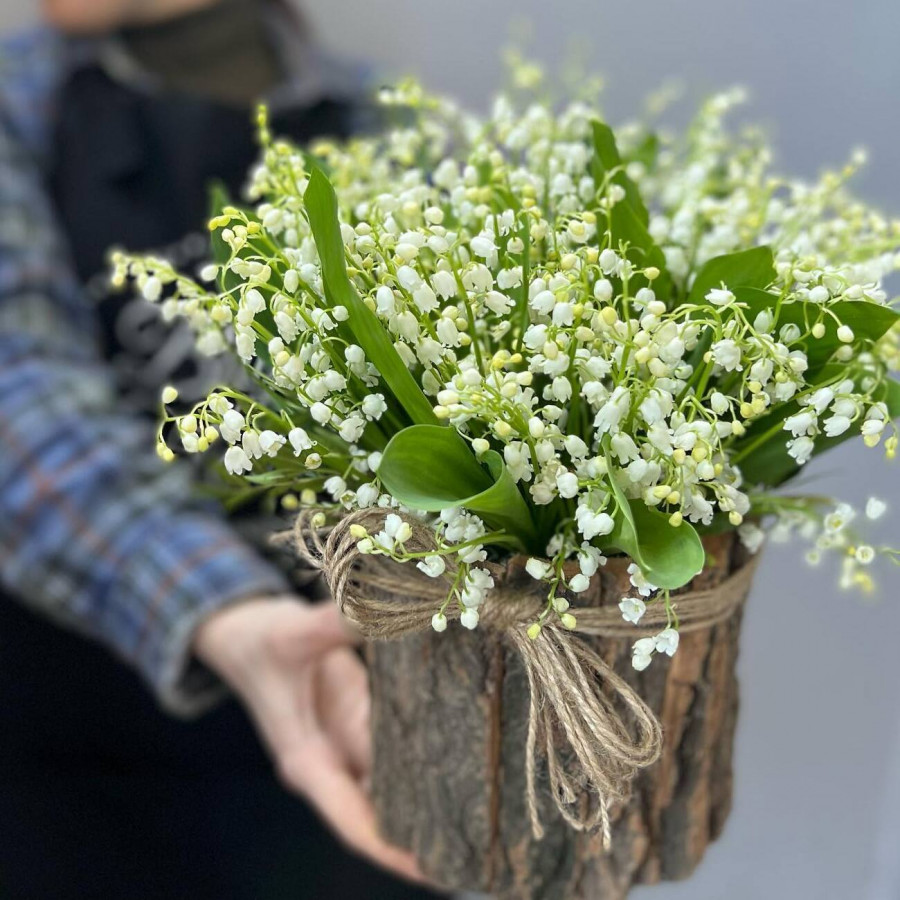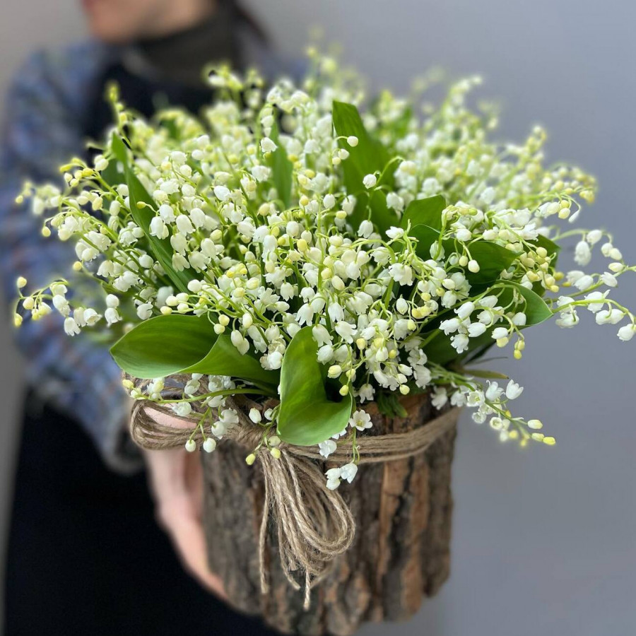 На фото композиция с ландышами. В составе: ландыш 15 шт, коробка (m) 1 шт, атласная лента 1 шт, . Все цветы свежие и ароматные, букет красиво оформлен и отлично подходит для подарка. Доступна доставка цветов или самовывоз.