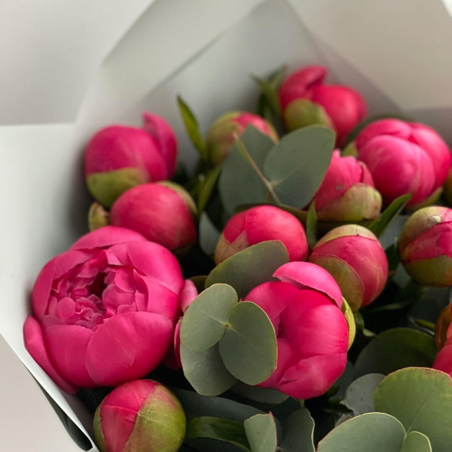 Коралловые пионы с эвкалиптом в Ижевске