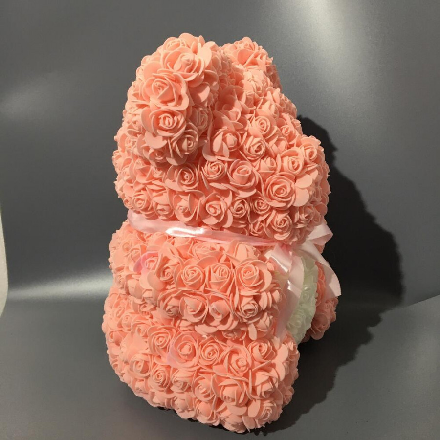 На фото мишка из роз «персик» 37 см. В составе: . Все цветы свежие и ароматные, букет красиво оформлен и отлично подходит для подарка. Доступна доставка цветов или самовывоз.
