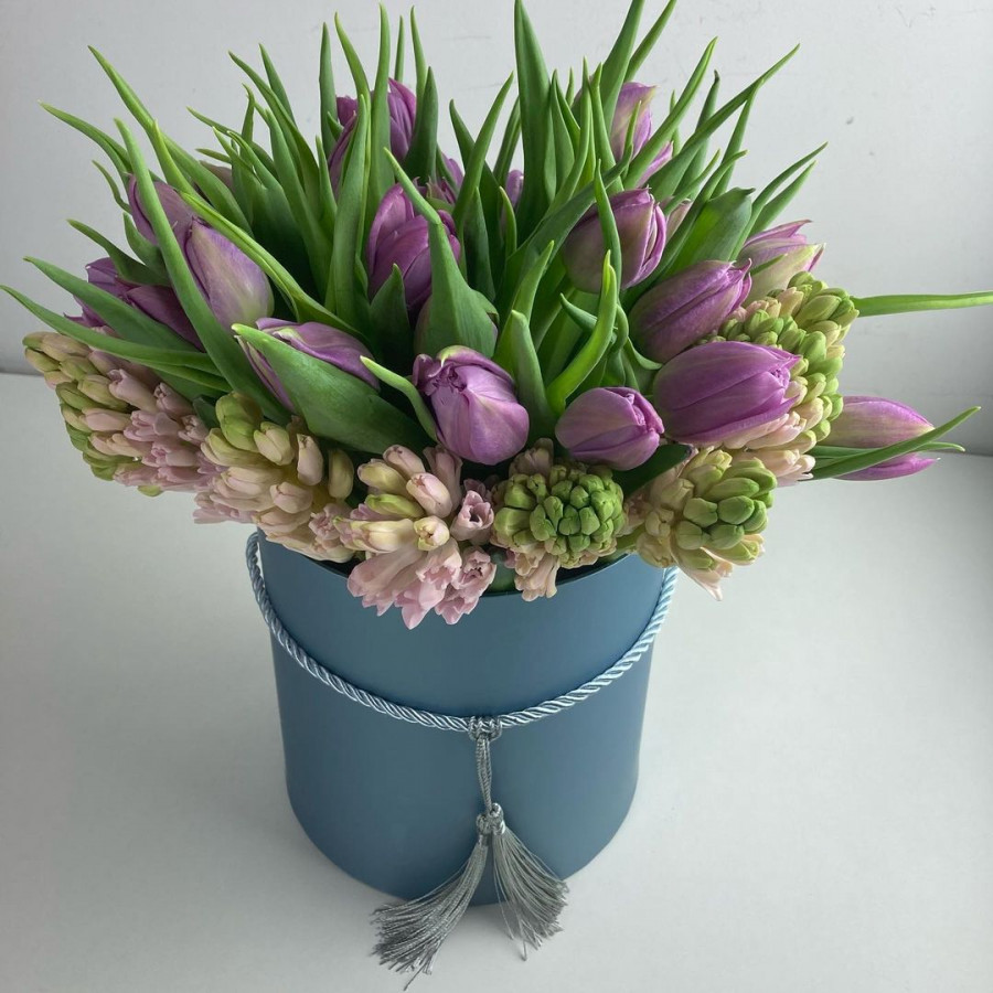 Тюльпаны и гиацинты в шляпной коробке в Ижевске